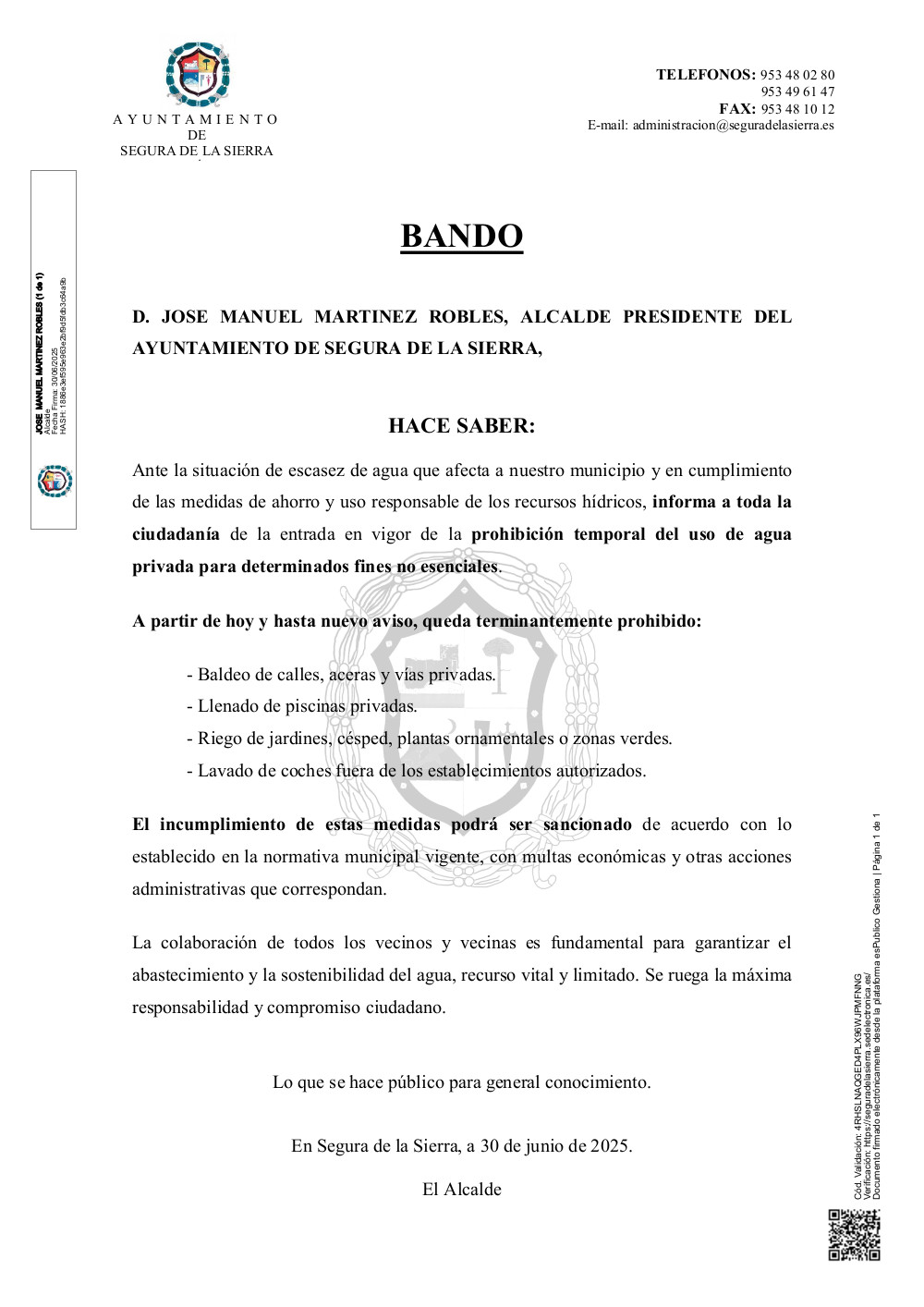 30 de junio de 2025| Avisos y bandos| Ayuntamiento de Segura de la Sierra