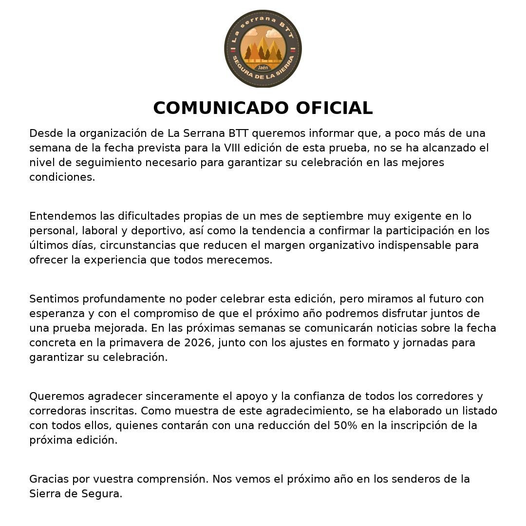 La prueba tendrá lugar durante el fin de semana del 27 y 28 de septiembre de 2025, y se desarrollará en un entorno privilegiado, recorriendo las localidades de Segura de la Sierra, Cortijos Nuevos y Hornos de Segura. Tres localidades emblemáticas de la Sierra de Segura que, unidas por su belleza y tradición, ofrecerán un recorrido tan exigente como espectacular, diseñado para dejar una huella imborrable en todos los participantes.