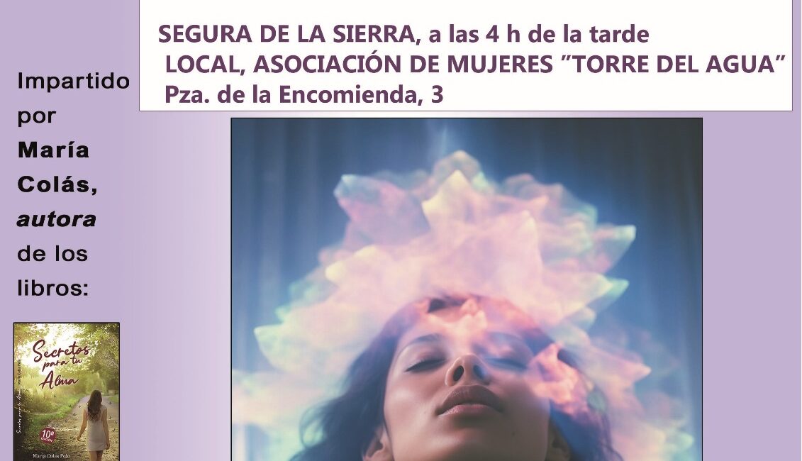 El próximo 8 de marzo, Día Internacional de la Mujer, María Colás ofrecerá su charla/taller “Mi niña interior, cómo canalizar la energía positiva” tanto en Segura de la Sierra como en Cortijos Nuevos.
