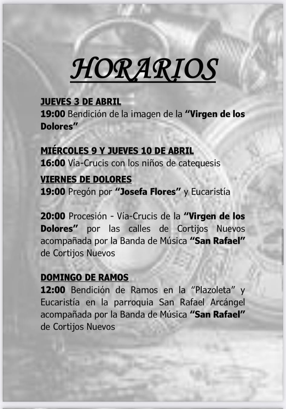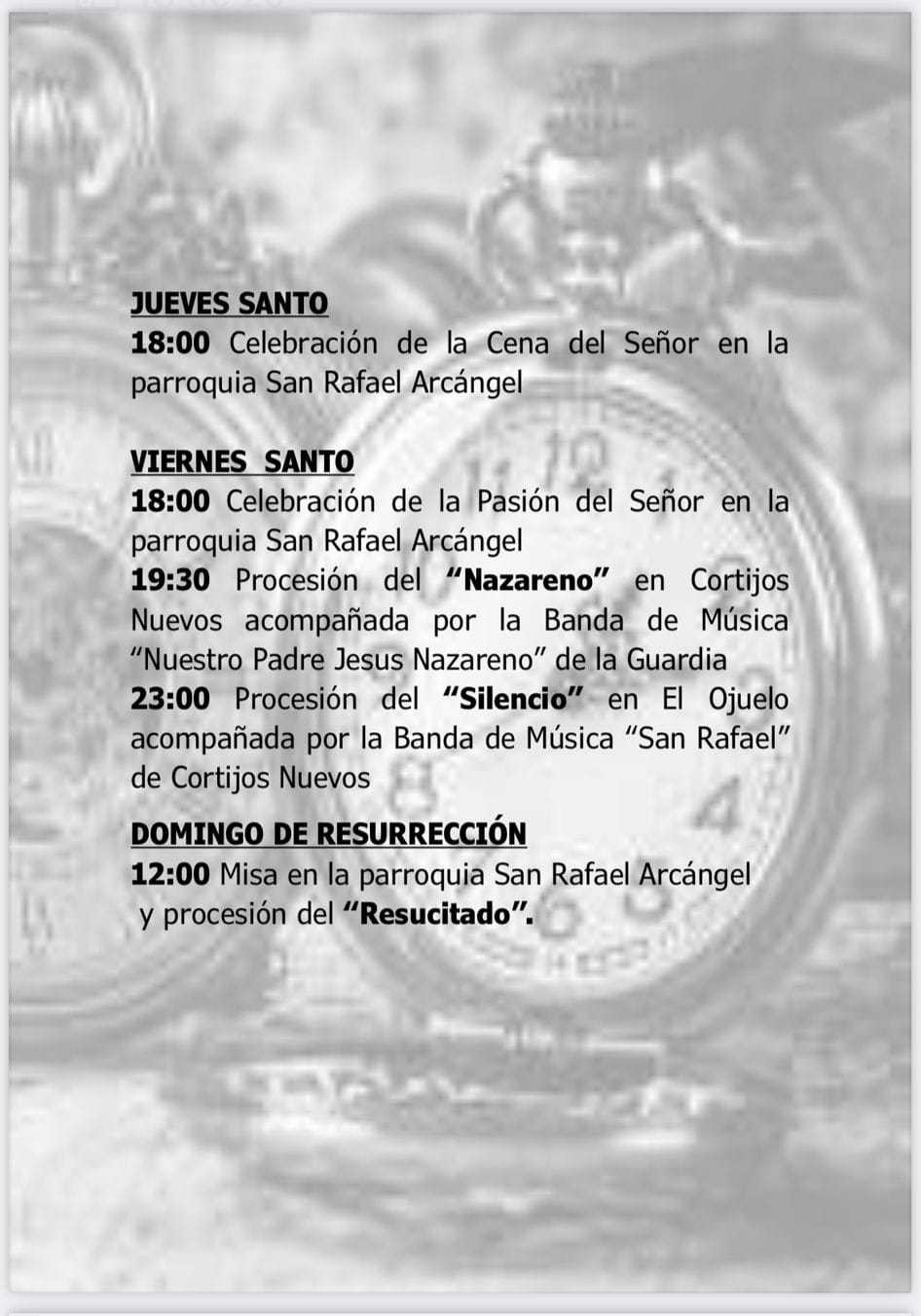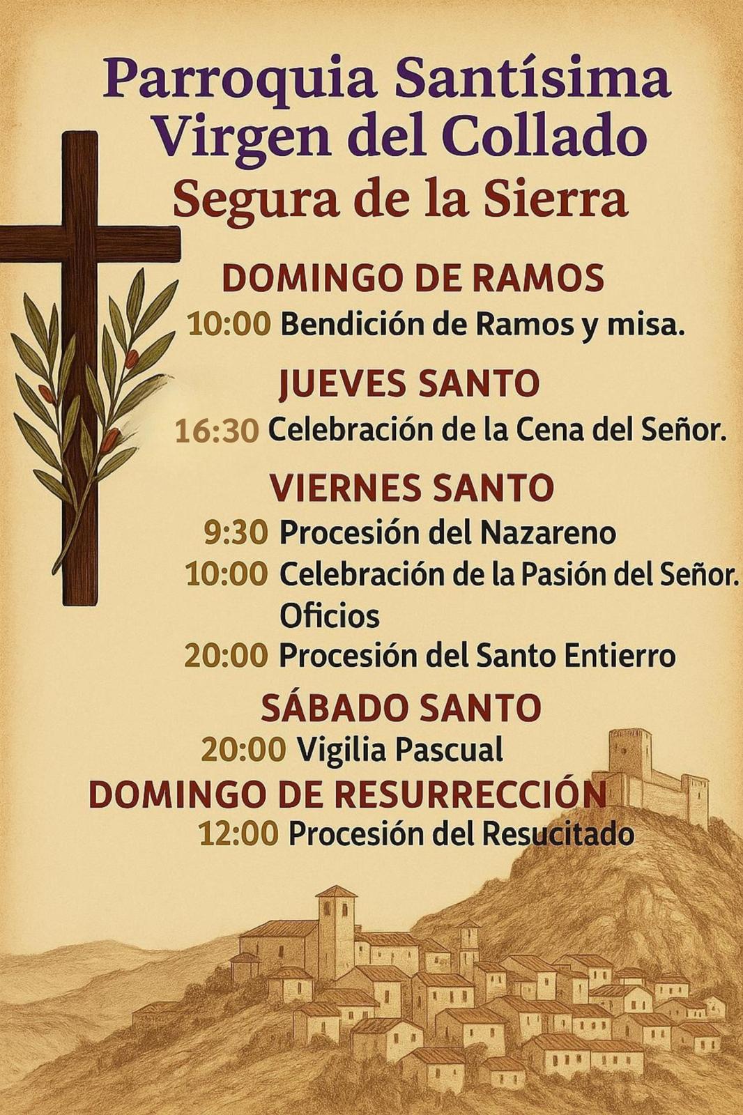 Compartimos el horario general de Semana Santa tanto para Segura de la Sierra como para la Parroquia San Rafael Arcángel de Cortijos Nuevos.