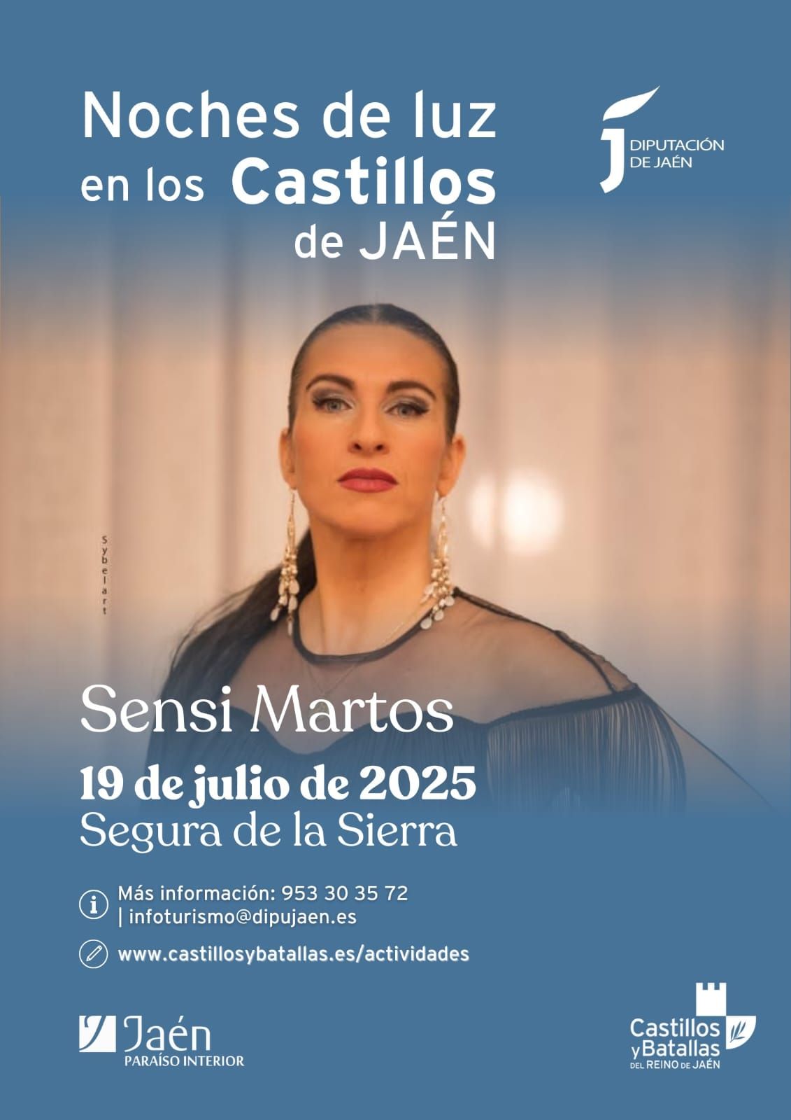 Noches de luz en los Castillos de Jaén vuelve a la fortaleza de Segura de la Sierra presentado a Sensi Martos el próximo 19 de julio de 2025 a las 22:00 horas.