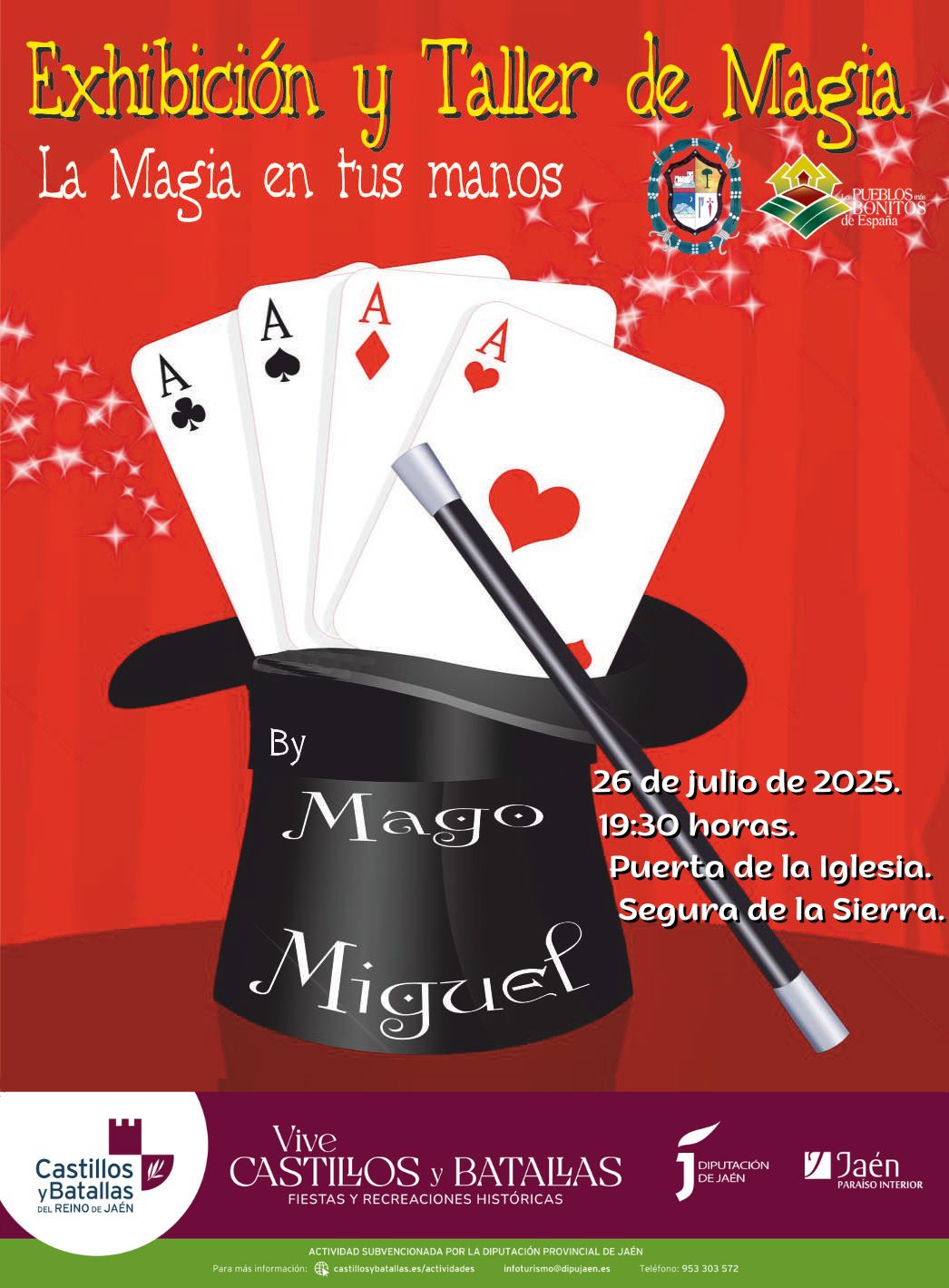 Este fin de semana se realizan varias actividades del programa Vive los castillos y Batallas en Cortijos Nuevos: El sábado 26 de julio, Exhibición y taller de magia.