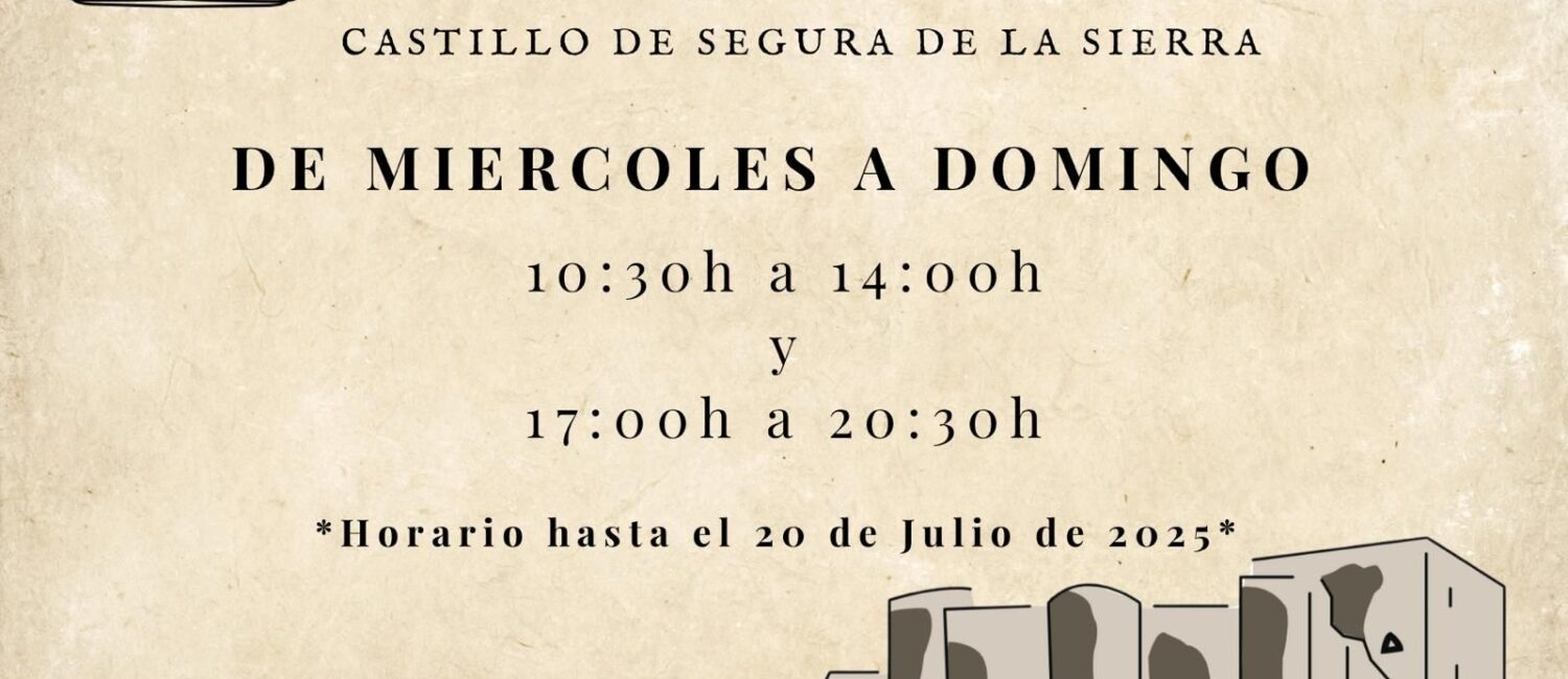 Horario de apertura del Castillo de Segura de la Sierra vigente desde el día de hoy. El escenario emblema de nuestro municipio, a disposición de todo aquel que quiera visitarlo, en el siguiente horario 👇🏻.